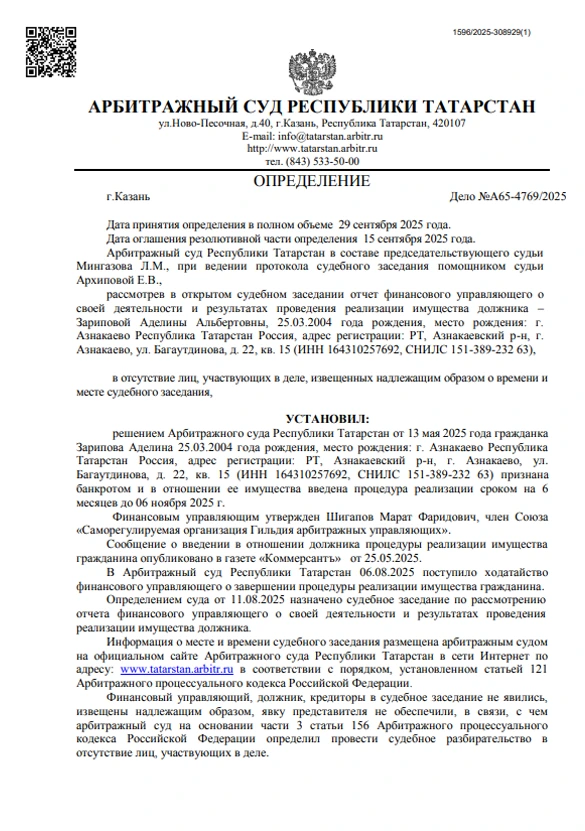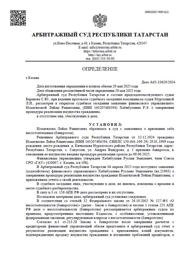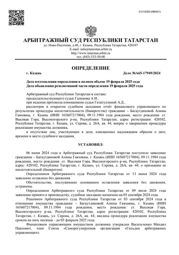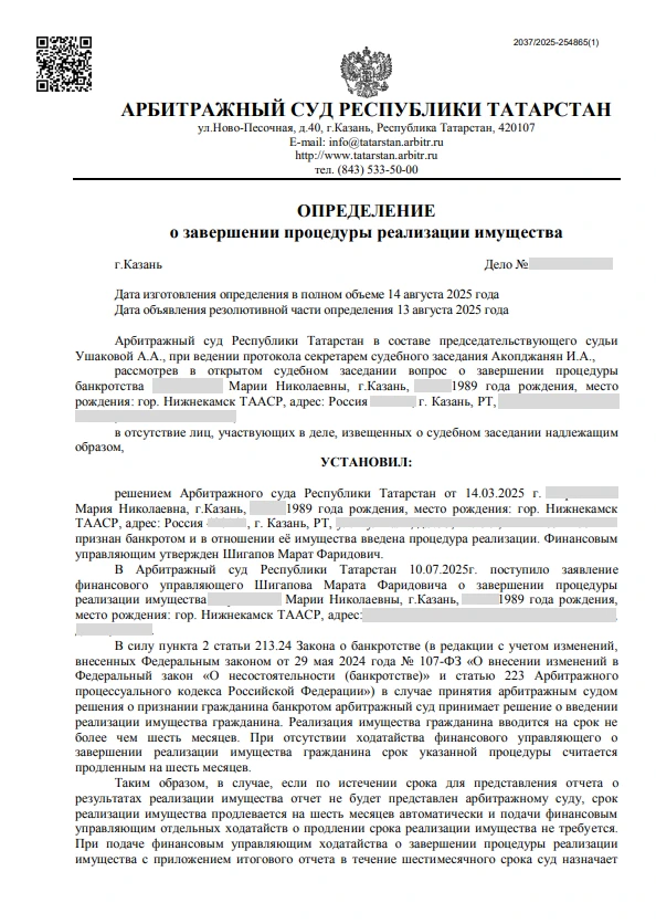 Дата решения суда об освобождении долгов: